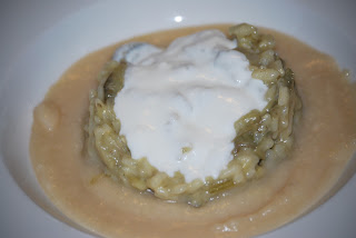 "RISOTTO AL CUCCHIAIO" CON CARCIOFI, MOUSSE FREDDA DI CAPRINO E CREMA DI CANNELLINI