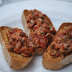 - Disponete su un piatto da portata le fette di pane abbrustolite e ricopritele con il sughetto preparato.